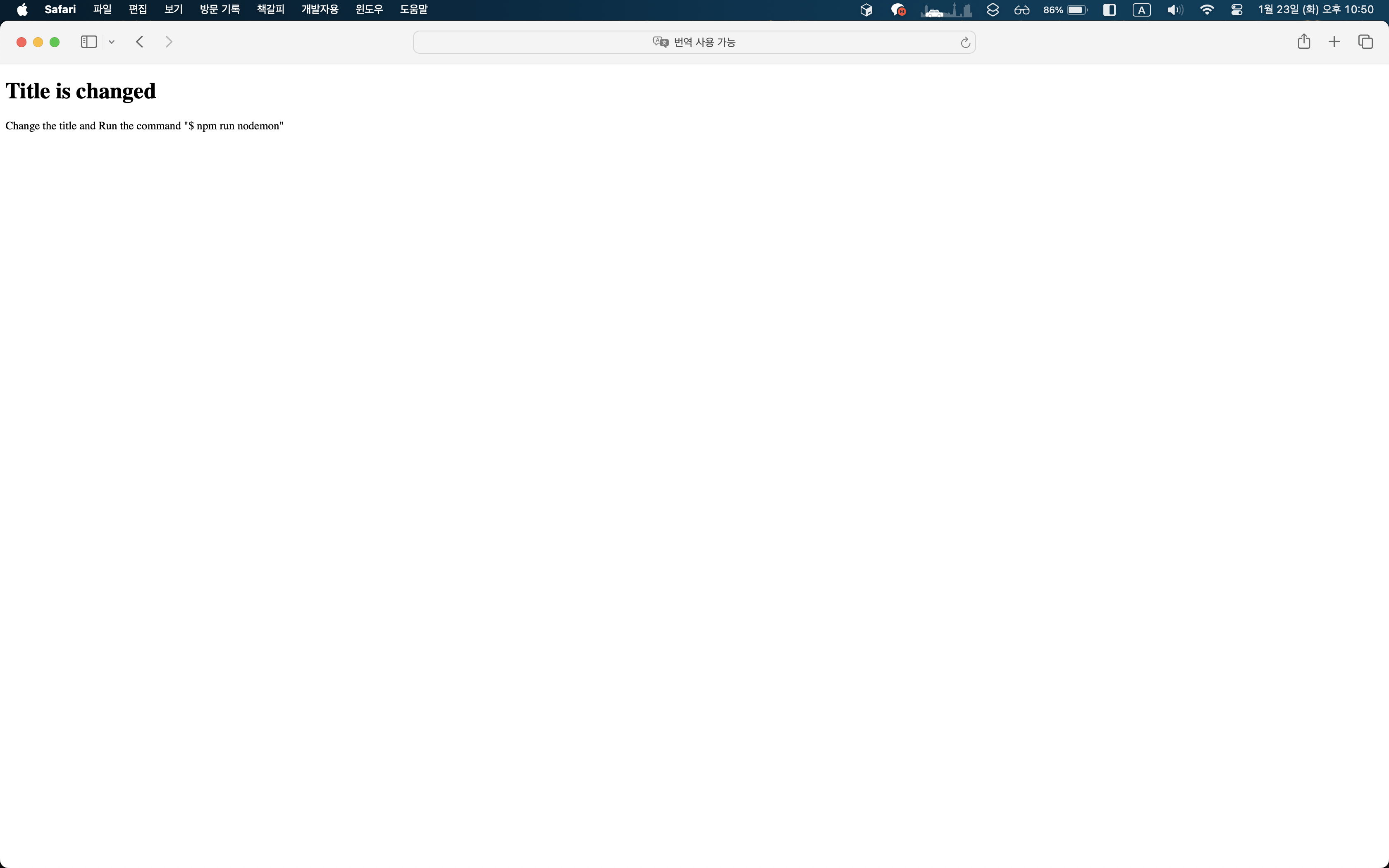 nodemon의 특성을 이해하기 쉽게 title을 바꾸기만 하면 바로 적용되도록 설정했다.
